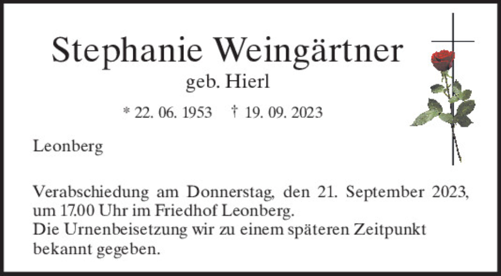 Hier finden Sie alle Traueranzeigen aus der Zeitung, die bisher für Stephanie Weingärtner erschienen sind.