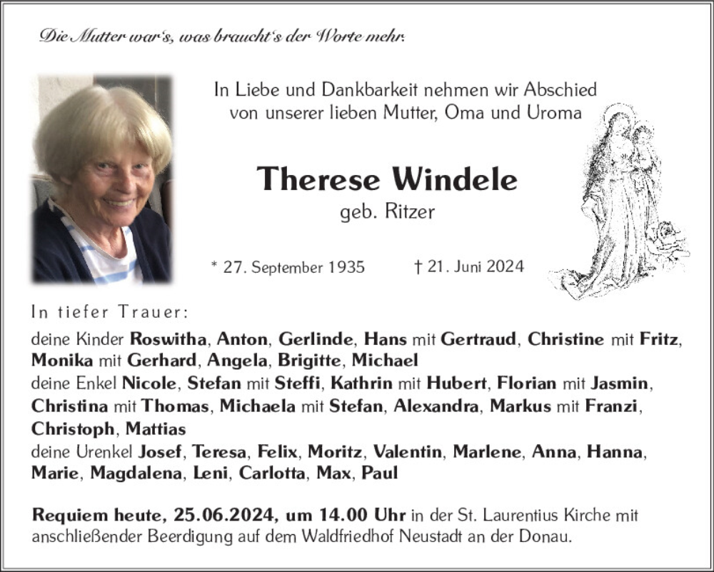 Hier finden Sie alle Traueranzeigen aus der Zeitung, die bisher für Therese Windele erschienen sind.