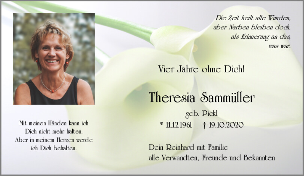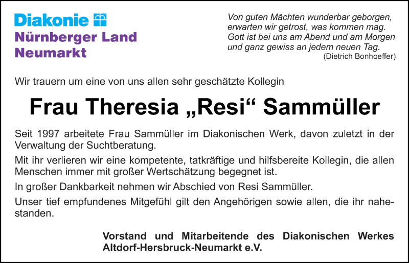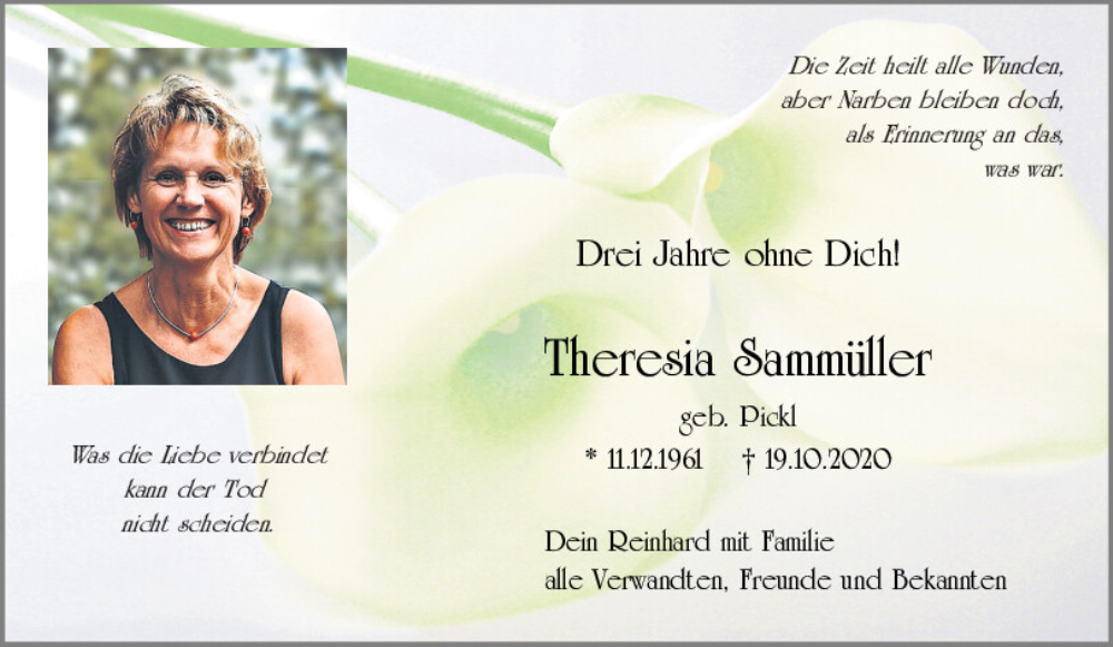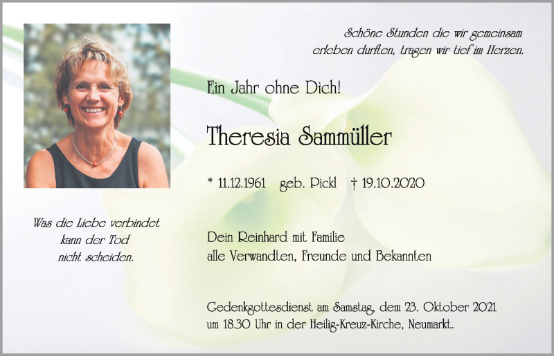 Hier finden Sie alle Traueranzeigen aus der Zeitung, die bisher für Theresia Sammüller erschienen sind.