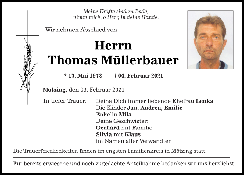 Hier finden Sie alle Traueranzeigen aus der Zeitung, die bisher für Thomas Müllerbauer erschienen sind.