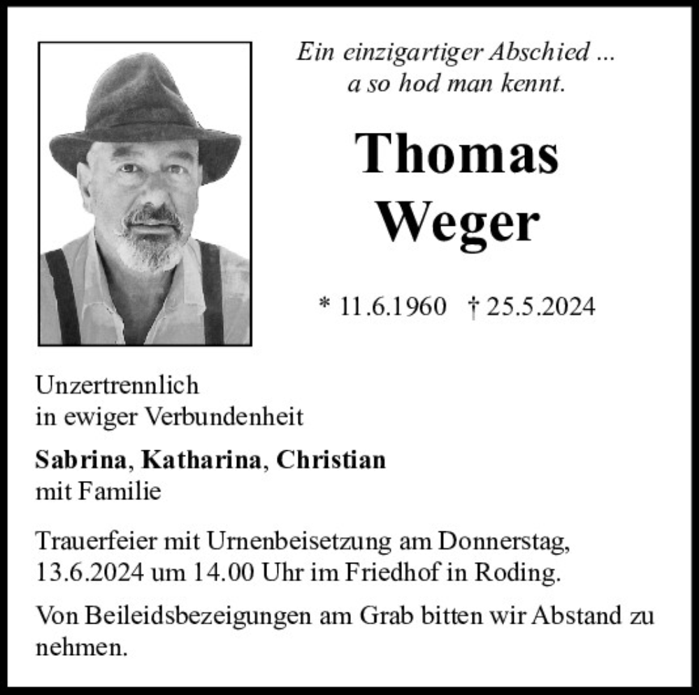 Hier finden Sie alle Traueranzeigen aus der Zeitung, die bisher für Thomas Weger erschienen sind.