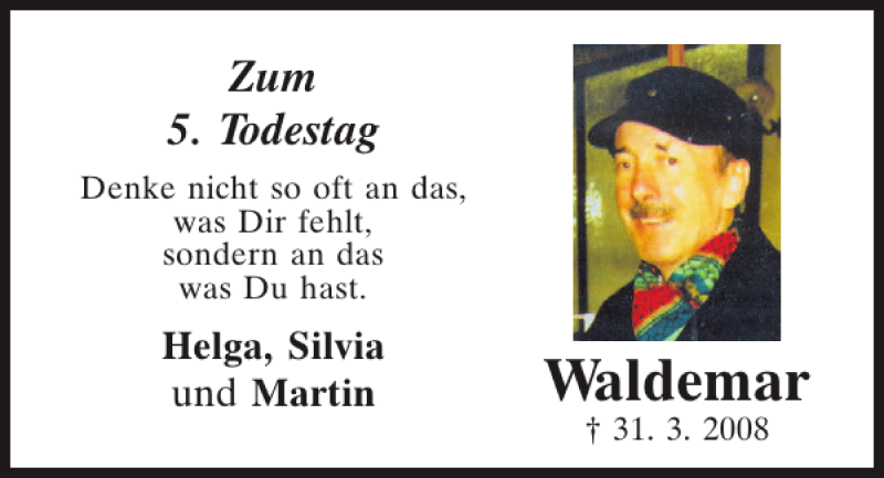 Hier finden Sie alle Traueranzeigen aus der Zeitung, die bisher für Waldemar erschienen sind.