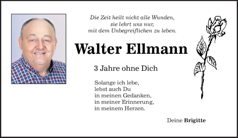 Hier finden Sie alle Traueranzeigen aus der Zeitung, die bisher für Walter Ellmann erschienen sind.