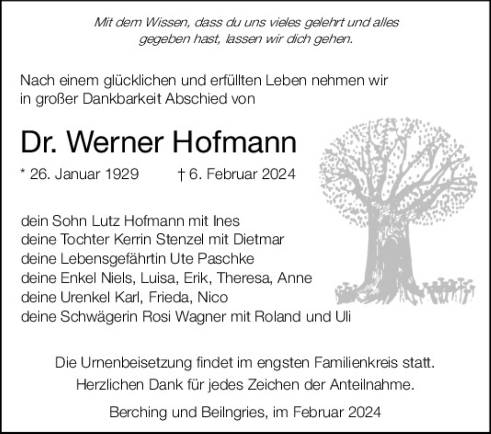 Hier finden Sie alle Traueranzeigen aus der Zeitung, die bisher für Werner Hofmann erschienen sind.